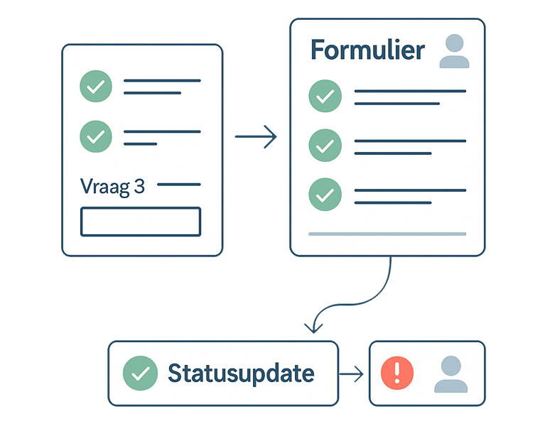 Formulieren passen zich aan op basis van antwoorden en verplichte velden. Statusupdates en meldingen zorgen dat afwijkingen of openstaande acties nooit onopgemerkt blijven.